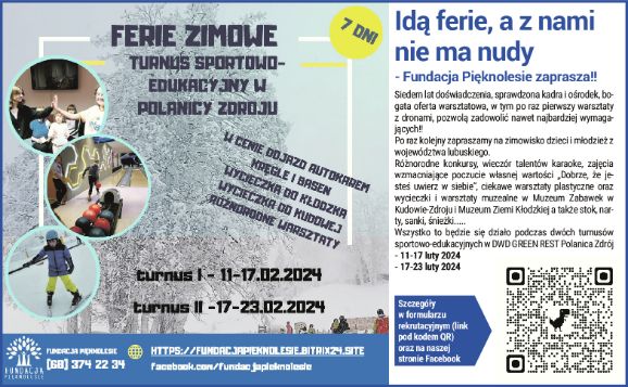 Zaczynamy zapisy na zimowy turnus sportowo-edukacyjny w Polanicy Zdrój!! Realizujemy z dziećmi program profilaktyki "Dobrze, że jesteś - Uwierz w siebie!" wzmacniający poczucie własnej wartości oraz pokazujący metody pozytywnej komunikacji.